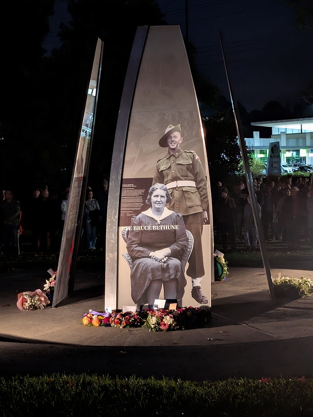 Wreaths were laid by representatives of the Mt Evelyn RSL, Lilydale RSl, Seville Township Group, Yarra Ranges Council, Evelyn MP Bridget Vallence, incumbent Casey MP Aaron Violi, the Seville Rural Fire Brigade, Seville Primary School, Lilydale Police, Wandin/Seville Community Bank, Seville Cricket Club, Seville Football Netball Club and the Johnson family, descendants of Bruce Bethune who is honoured on the memorial.