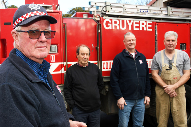 David Westbury, Terry Burgi, Ray Sartori and Tom Wilkinson are firefighters at Gruyere CFA, the four have a collective experience of nearly 200 years.