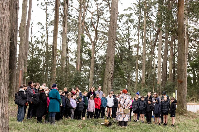 Located in Kalorama along the ngurrak barring trail, the installation has been activated with an education program for children from Mount Dandenong Primary School.