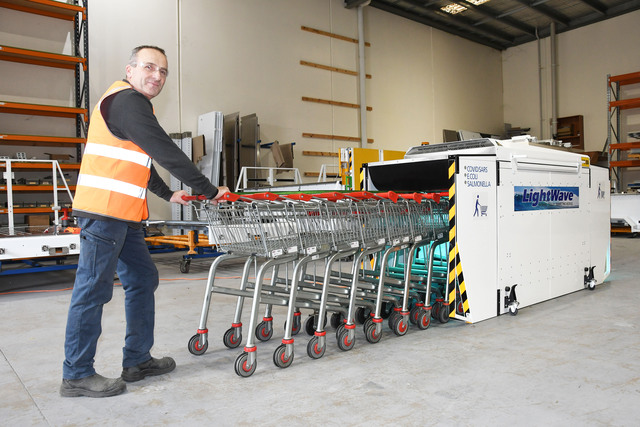 “We’re hoping to bring it into shopping centres. Every store would have one at the front, and when the trolley staff collect their trolleys, they go through this (unit) and then into the store, and then they’re disinfected and ready to go,” Mr Gardiner said.