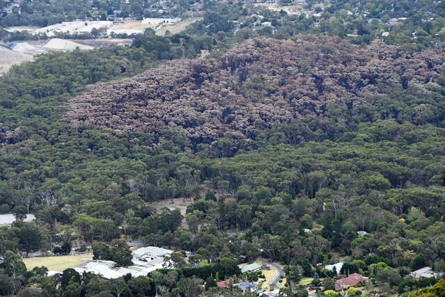 The canopy in the reserve is eerily quiet apart from the creak of burnt, brittle trunks in the wind.