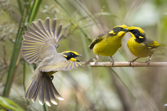 The Helmeted Honeyeater, a critically endangered species whose only wild population exists in the Yellingbo Nature Conservation Area, was observed three times.