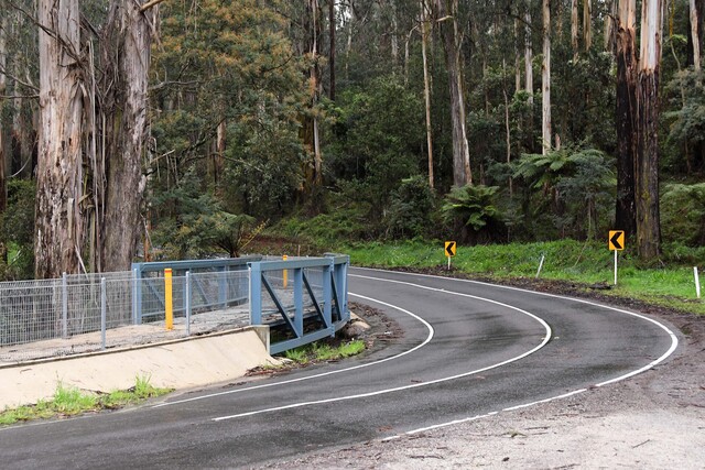 Healesville-Kinglake Road between Toolangi and Chum Creek, the Black Spur Drive on Maroondah Highway in Fernshaw, stretches of Don Road in Badger Creek, Mount Toolebewong and Don Valley, Donna Buang Road in Warburton, Warburton-Woods Point Road from East Warburton onwards, a section of Yarra Junction-Noojee Road in Powelltown, Gembrook-Launching Place Road between Hoddles Creek and Gembrook and Gembrook Road from Gembrook to past Pakenham Upper.