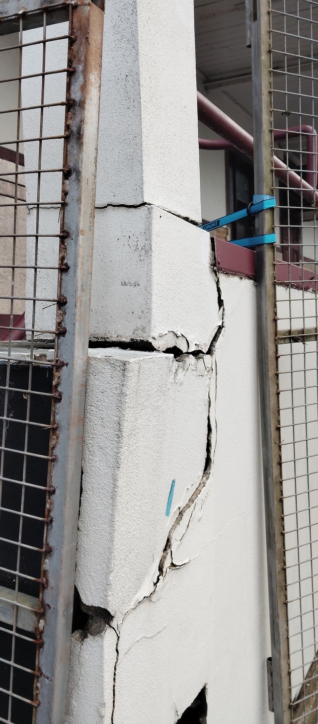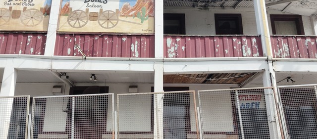 Decaying wood and cracking brick are all visible from the front of the old watering hole, which is fenced off . Perhaps most concerning is the visible bending on the second floor, leading to concerns for collapse.
