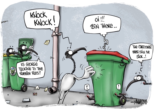 The ibises were not so sure whether the cartoonist was back to work or not, so they just drew the cartoon on his behalf.