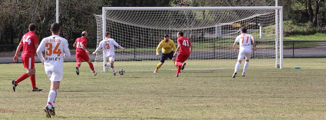 The deadlock was broken in the 11th minute when Callum Ludwig broke down the right-hand side and put in a cross for Grote, who got an inventive flick goalward which the Healesville keeper kept out. The ball spilled clear and eventually made it to Byron Loveless on the edge of the box whose shot took a slight deflection but ended up in the bottom corner to open the scoring.