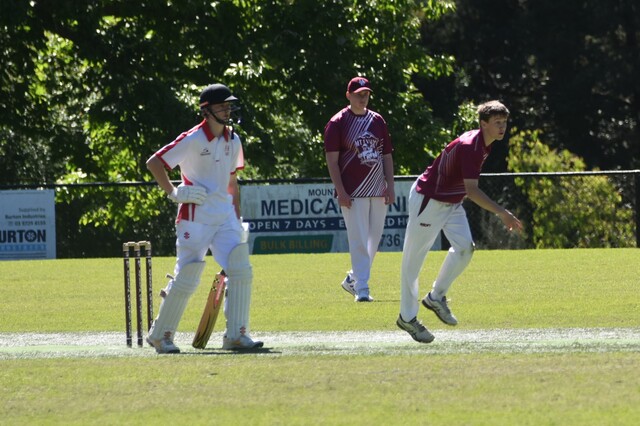 This week, they are pitted against a strong Mitcham line-up and have found the going a bit tough against one of the competition’s best teams. Mt Evelyn would open up with the bat and would find it difficult against the skilled bowling unit of the Tigers. Early wickets left the middle order to fight to avoid a collapse. The pressure was relentless with each new bowler. Fighting innings from Luke Hanley, Joel Walsh and Toby Kenins ensured the Mounters wouldn’t be bundled out, and with Jack Lorkin and Ali Lazarus at the wicket, and Walsh retired, there is plenty left to build the total beyond 5/85.